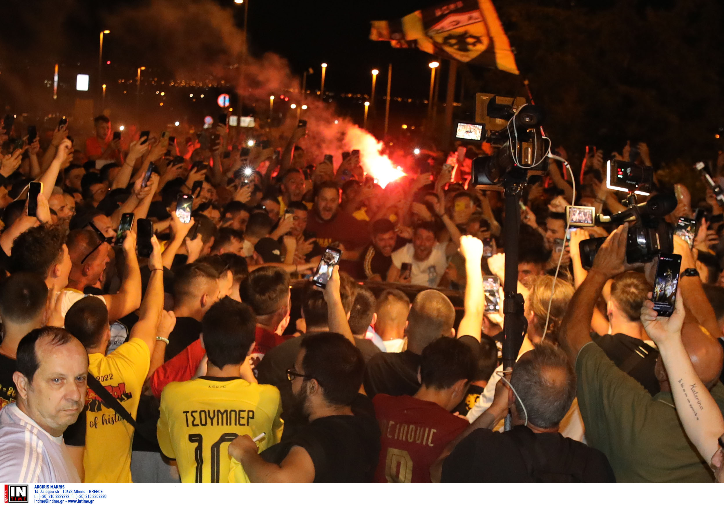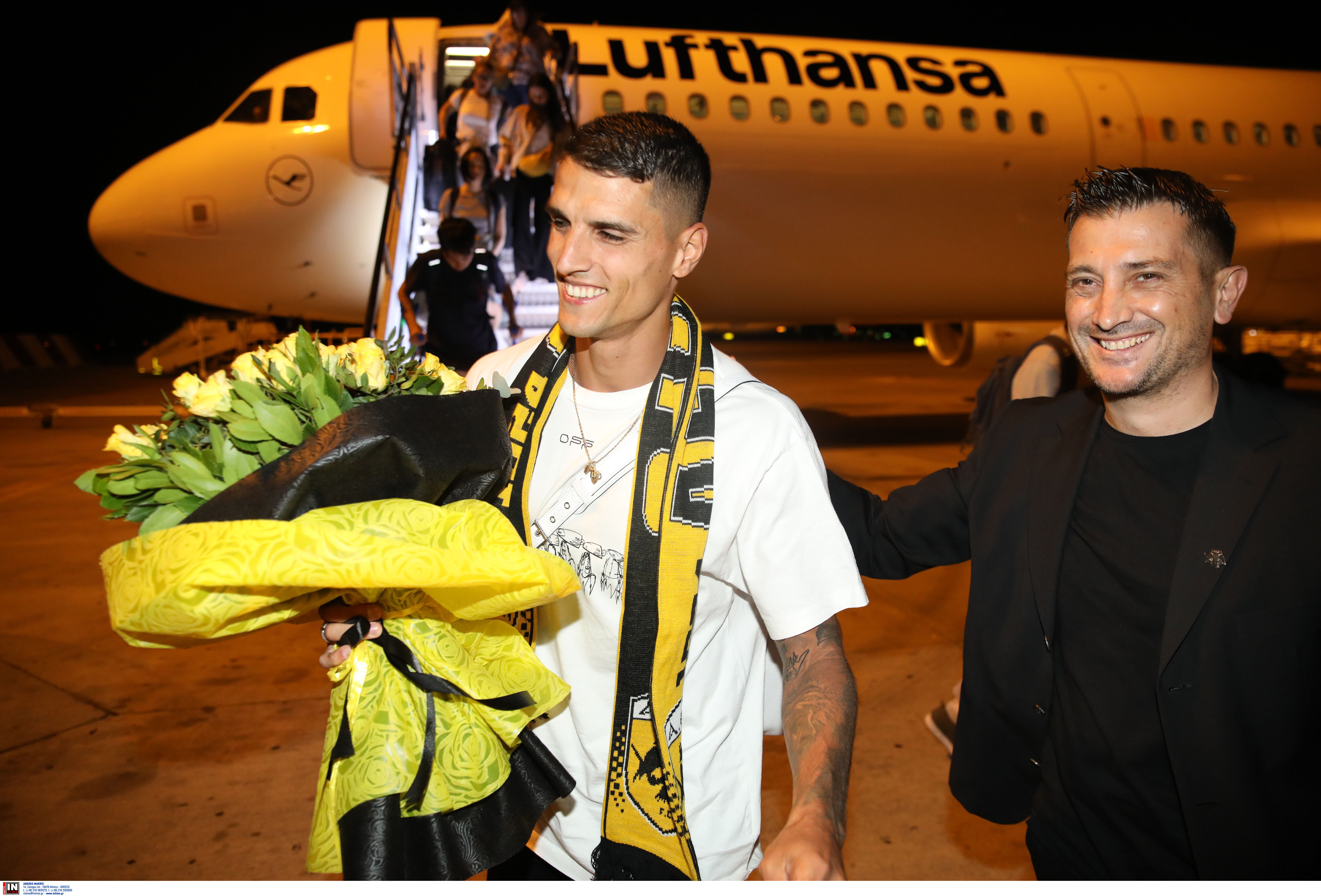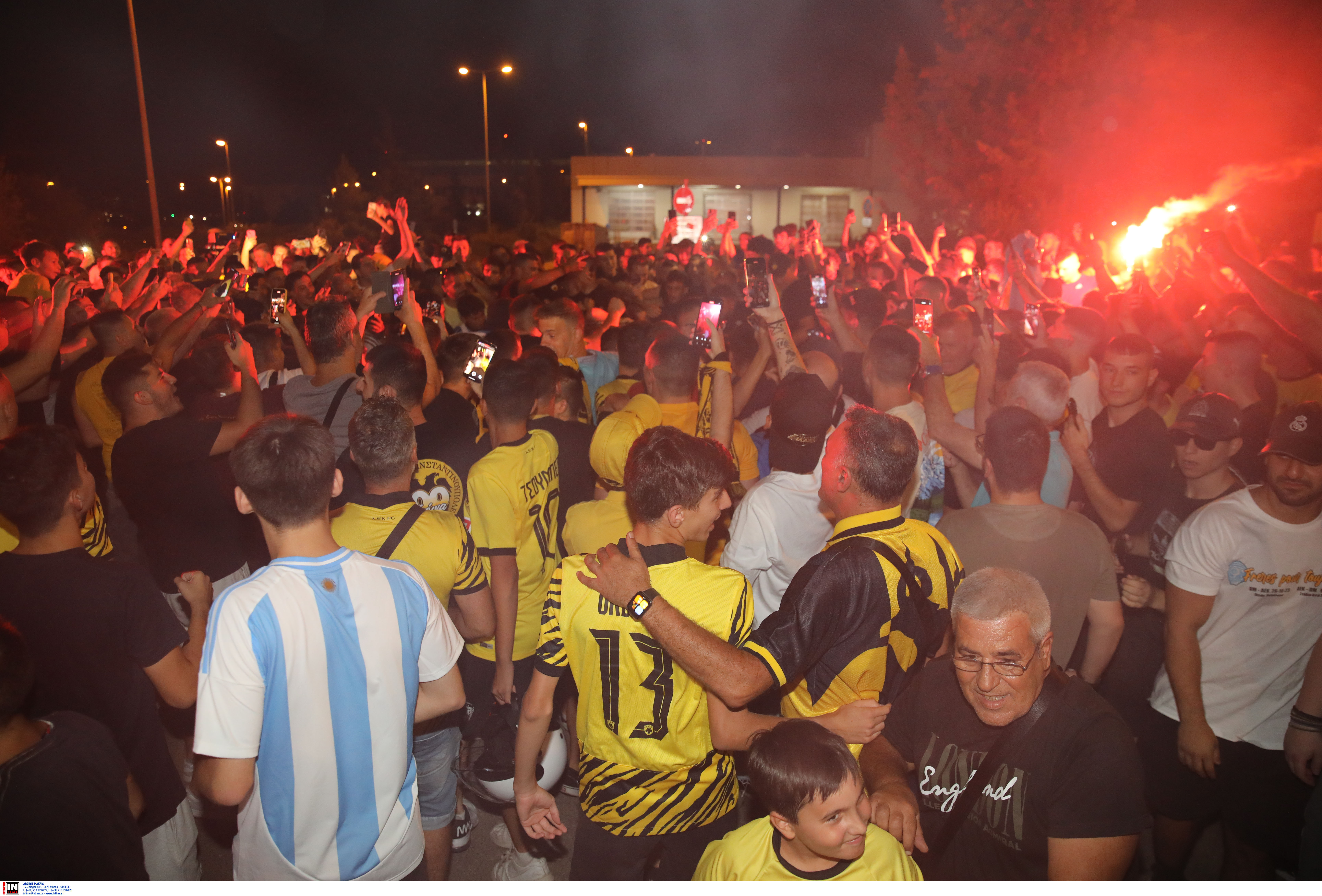 Ο κόσμος της ΑΕΚ περίμενε υπομονετικά τον Λαμέλα και μόλις το αυτοκίνητο που τον πήρε απ’ την πίστα πέρασε απ’ τον κλοιό των οχημάτων της Αστυνομίας, η… νύχτα έγινε μέρα στο αεροδρόμιο, με τον Αργεντινό να γνωρίζει την αποθέωση.