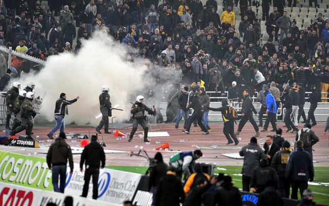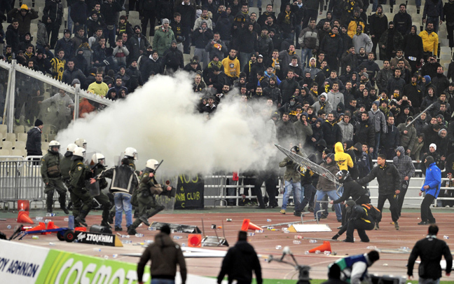 Ρινγκ θύμισε για μία ακόμη φορά το Ολυμπιακό στάδιο. Τα προεόρτια άρχισαν πριν από τη χθεσινή αναμέτρηση της ΑΕΚ με τον Παναθηναϊκό, τα επεισόδια συνεχίστηκαν με εντάσεις στα επίσημα και ολοκληρώθηκαν με μάχες σώμα με σώμα μεταξύ φιλάθλων των γηπεδούχων και των αστυνομικών δυνάμεων…