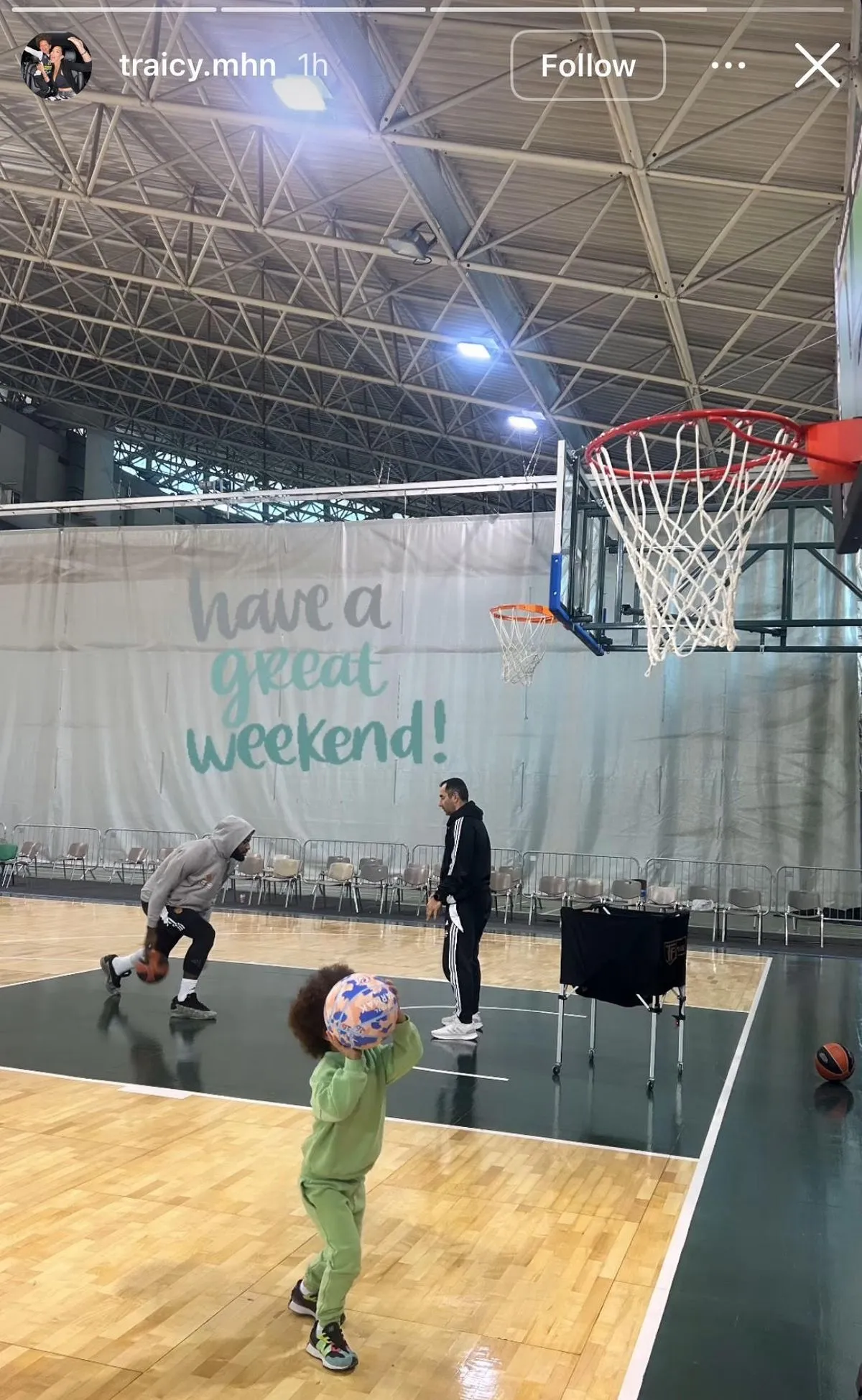 Στη φωτογραφία, ο Λεσόρ βρίσκεται στο παρκέ, προπονούμενος υπό τις οδηγίες του βοηθού προπονητή του Παναθηναϊκού, Σάββα Καμπερίδη.