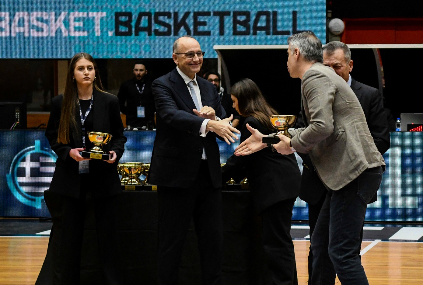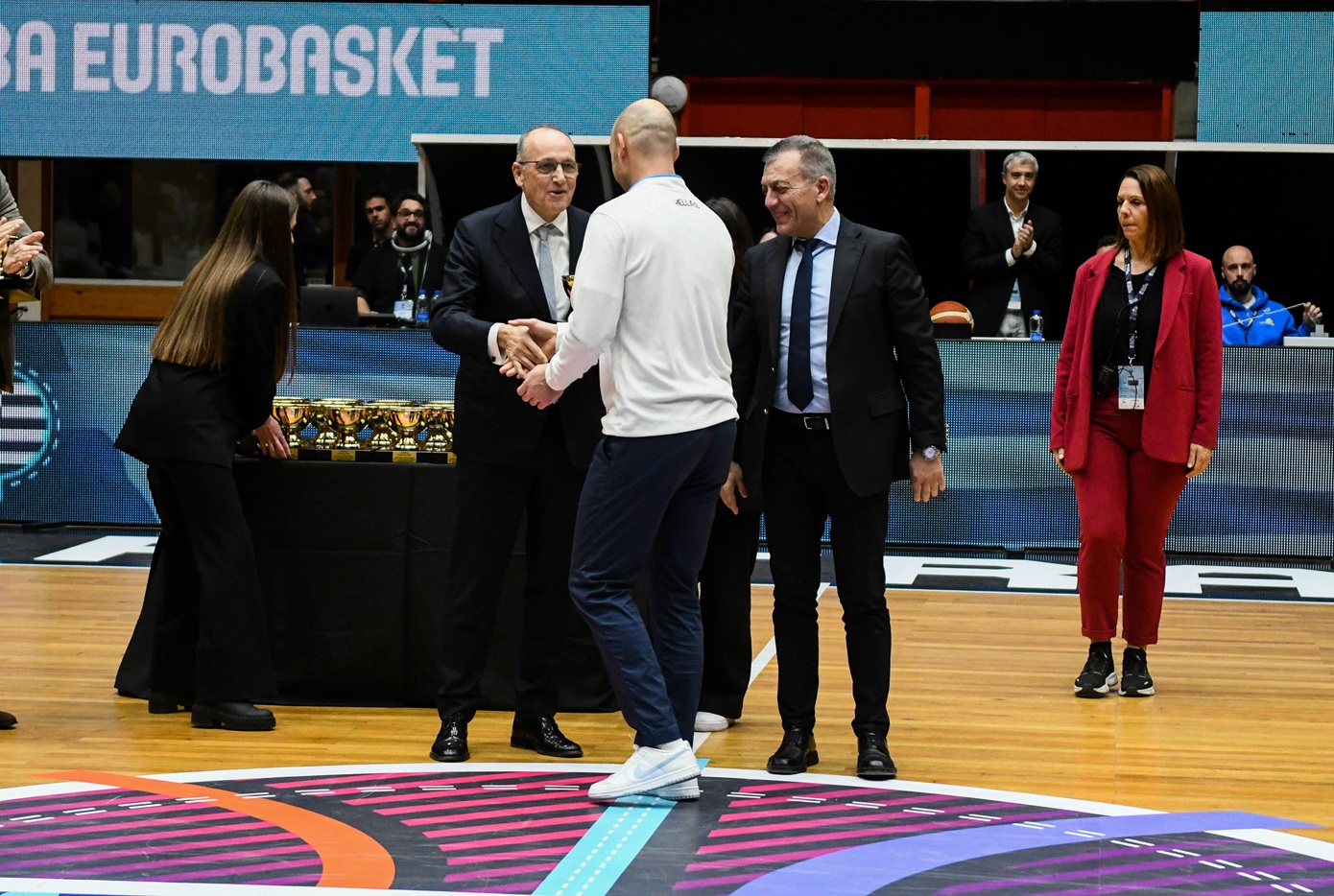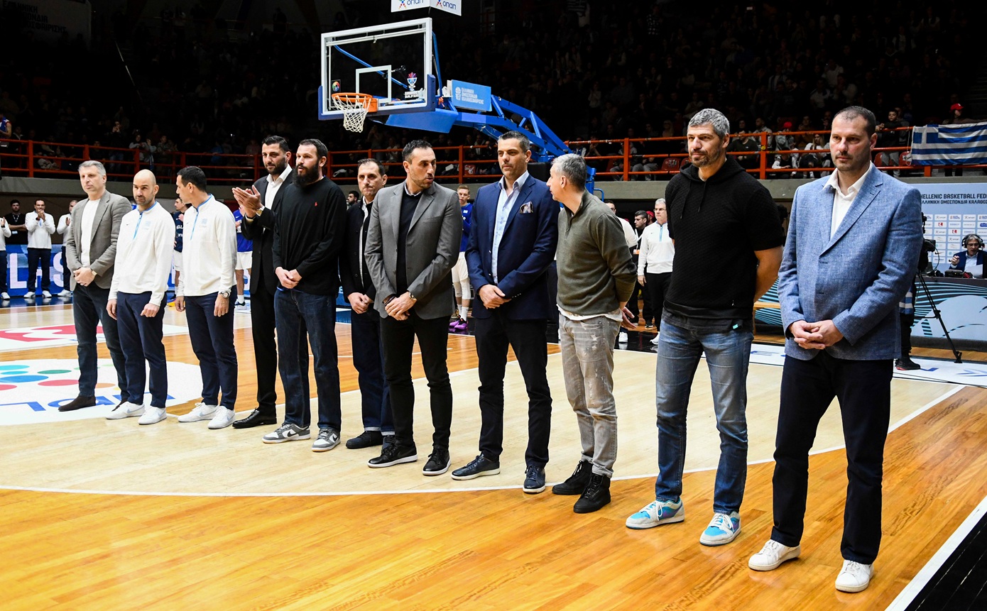 Τα μέλη της Εθνικής Ανδρών που κατέκτησαν τη νίκη στο Βελιγράδι το 2005 αποθεώθηκαν από το κοινό κατά τη διάρκεια του ημιχρόνου της αναμέτρησης Ελλάδας – Ολλανδίας στο κλειστό «Δ. Τόφαλος» στην Πάτρα, στο πλαίσιο της 6ης και τελευταίας αγωνιστικής των προκριματικών του Ευρωμπάσκετ 2025.