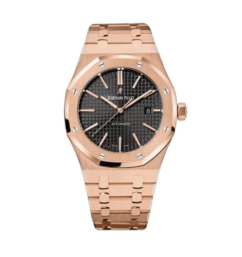 Royal Oak Selfwinding 41mm: Αυτό το μοντέλο με μαύρο καντράν και μπρασελέ από ροζ χρυσό διατίθεται σε τιμές που ξεκινούν από περίπου $86,999 .
