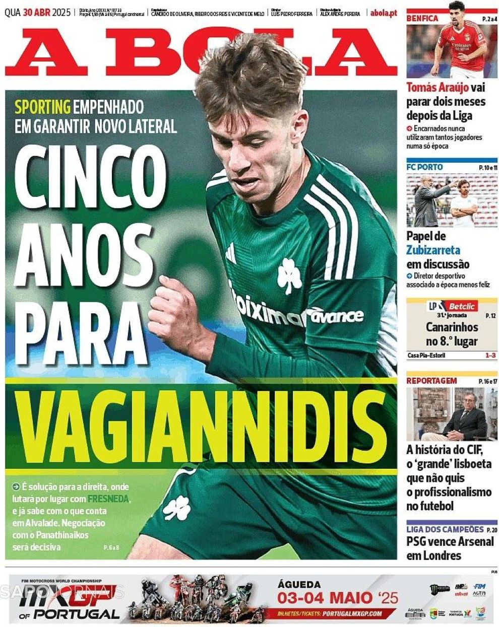 Νέες πληροφορίες για την υπόθεση Βαγιαννίδη αποκαλύπτει σήμερα η «Α Bola», με την πορτογαλική εφημερίδα μάλιστα να προχωράει σε λεπτομέρειες αναφορικά με την πρόταση της Σπόρτινγκ Λισαβόνας προς τον διεθνή δεξιό μπακ του Παναθηναϊκού.