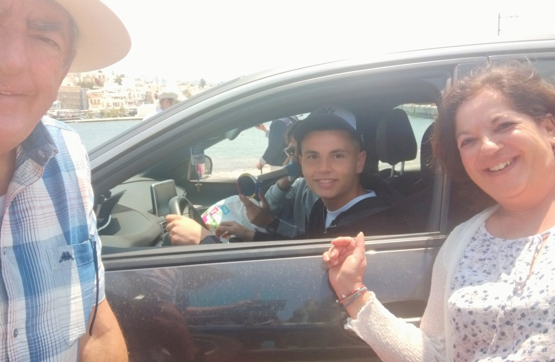 Από τη στιγμή που πάτησε το πόδι του στο νησί, ο Μουζακίτης δεν σταματά να τραβάει τα βλέμματα των φίλων του Ολυμπιακού, που σπεύδουν να απαθανατίσουν τη στιγμή με selfies και αυτόγραφα.
