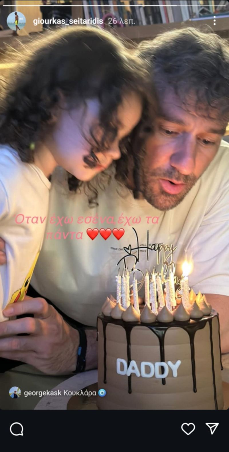 Το ζευγάρι είχε κρατήσει τη σχέση του σχεδόν μυστική, ενώ τις φωτογραφίες από το γάμο τους ανέβασε ο πεθερός του Γιούρκα Σεϊταρίδη, Πανουργιάς Παπαϊωάννου στον προσωπικό του λογαριασμό στο Instagram. Από τότε, οι μόνες φωτογραφίες που είχαμε δει από τον Γιούρκα, τη σύζυγο και την κόρη τους ήταν από τον φακό των παπαράτσι που εντόπιζε την οικογένεια στο κέντρο της πόλης καθώς το ζευγάρι κρατά πολύ χαμηλούς τόνους στη ζωή του. Ο Γιούρκας Σεϊταρίδης είχε απαθανατιστεί να κρατά την κόρη του σε μάρσιππο και να την πηγαίνει βόλτα με το καρότσι, τώρα όμως πόζαρε μαζί της με αφορμή τα γενέθλιά του και ανέβασε την φωτογραφία στον προσωπικό του λογαριασμό στο Instagram συνοδεύοντάς τη με την λεζάντα «Oταν έχω εσένα έχω τα πάντα.» Το θέμα της τούρτας ήταν εμπνευσμένο από την πατρότητα καθώς πάνω έγραφε DADDY με ζαχαρόπαστα.