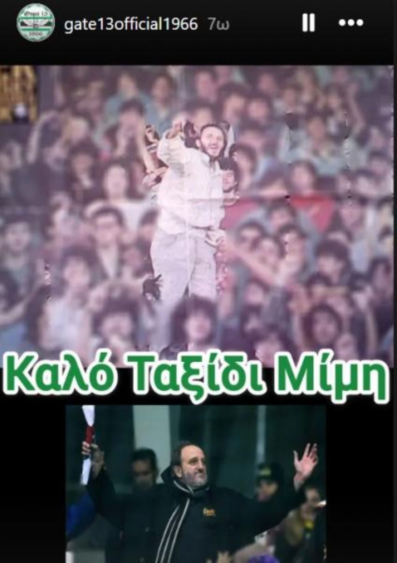 Οι οργανωμένοι οπαδοί του Ολυμπιακού είπαν το «αντίο» τους στον Μίμη, με μια φωτογραφία και την εξής λεζάντα: «Σεβασμό στους γνήσιους οπαδούς, καλό ταξίδι».