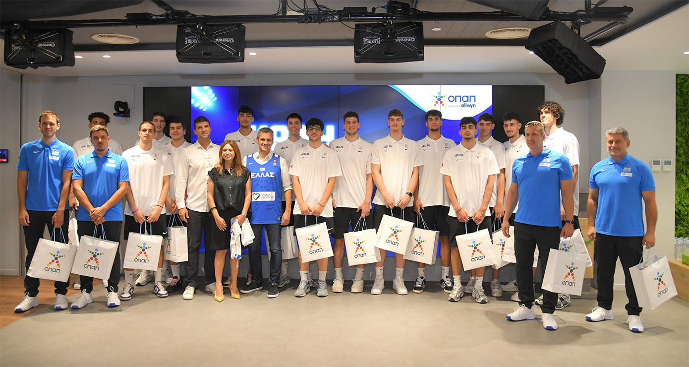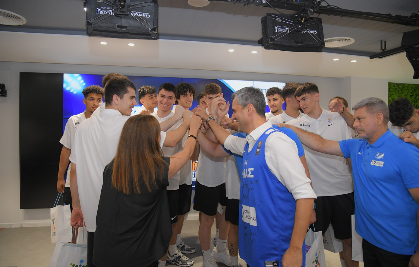Αποθεωτική υποδοχή επεφύλασσαν οι εργαζόμενοι του ΟΠΑΠ στα μέλη της Εθνικής Ομάδας Μπάσκετ U20 και τους ευχήθηκαν καλή επιτυχία στην προσπάθειά τους για διάκριση στο Ευρωπαϊκό Πρωτάθλημα Μπάσκετ Νέων Ανδρών.