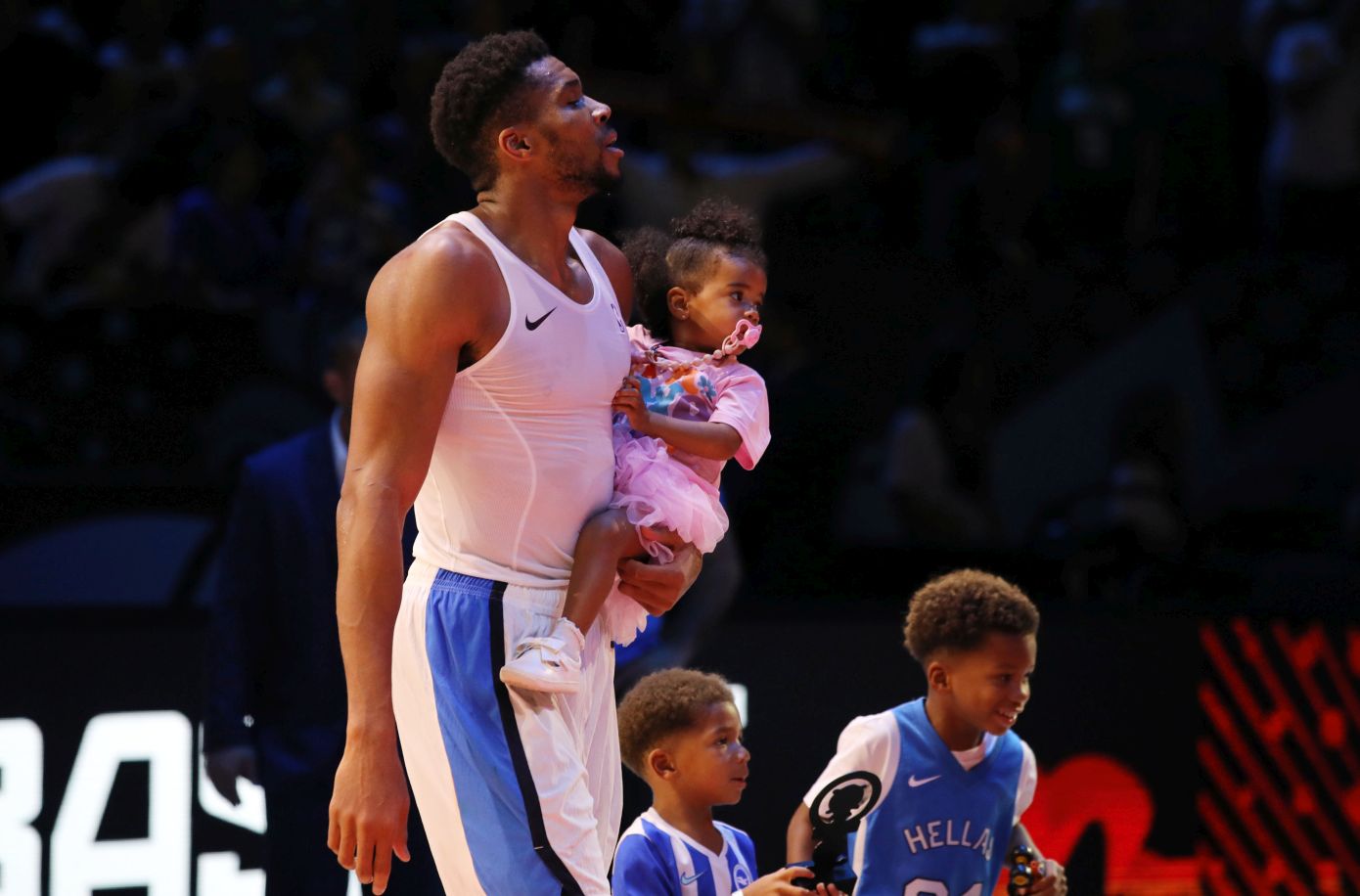 Κατά την απονομή των μεταλλίων, ο Γιάννης παρέλαβε το δικό του κρατώντας αγκαλιά την μεγάλη του κόρη, Εύα-Μπρουκ, η οποία χθες είχε τα γενέθλιά της και έκλεισε τα δυο της χρόνια. Μάλιστα μετά την παραλαβή του μεταλλίου του, ο Greek Freak το έβγαλε από το λαιμό του και το φόρεσε στη μικρή. Μαζί του στο παρκέ ήταν και τα δυο μεγαλύτερα παιδιά του, ο Λίαμ-Τσαρλς πέντε ετών και ο Μάβερικ-Σάι 4 ετών. Ο Γιάννης και η Μαράια Ριντλσπρίνγκερ έχουν άλλη μια κόρη την Άρια-Κάπρι που είναι μόλις τεσσάρων μηνών, ενώ ο Γιάννης έχει δηλώσει πως θα ήθελε να αποκτήσουν και 5ο παιδί.
