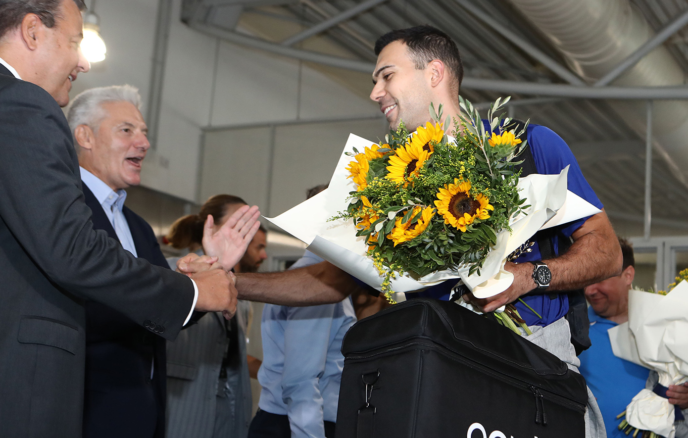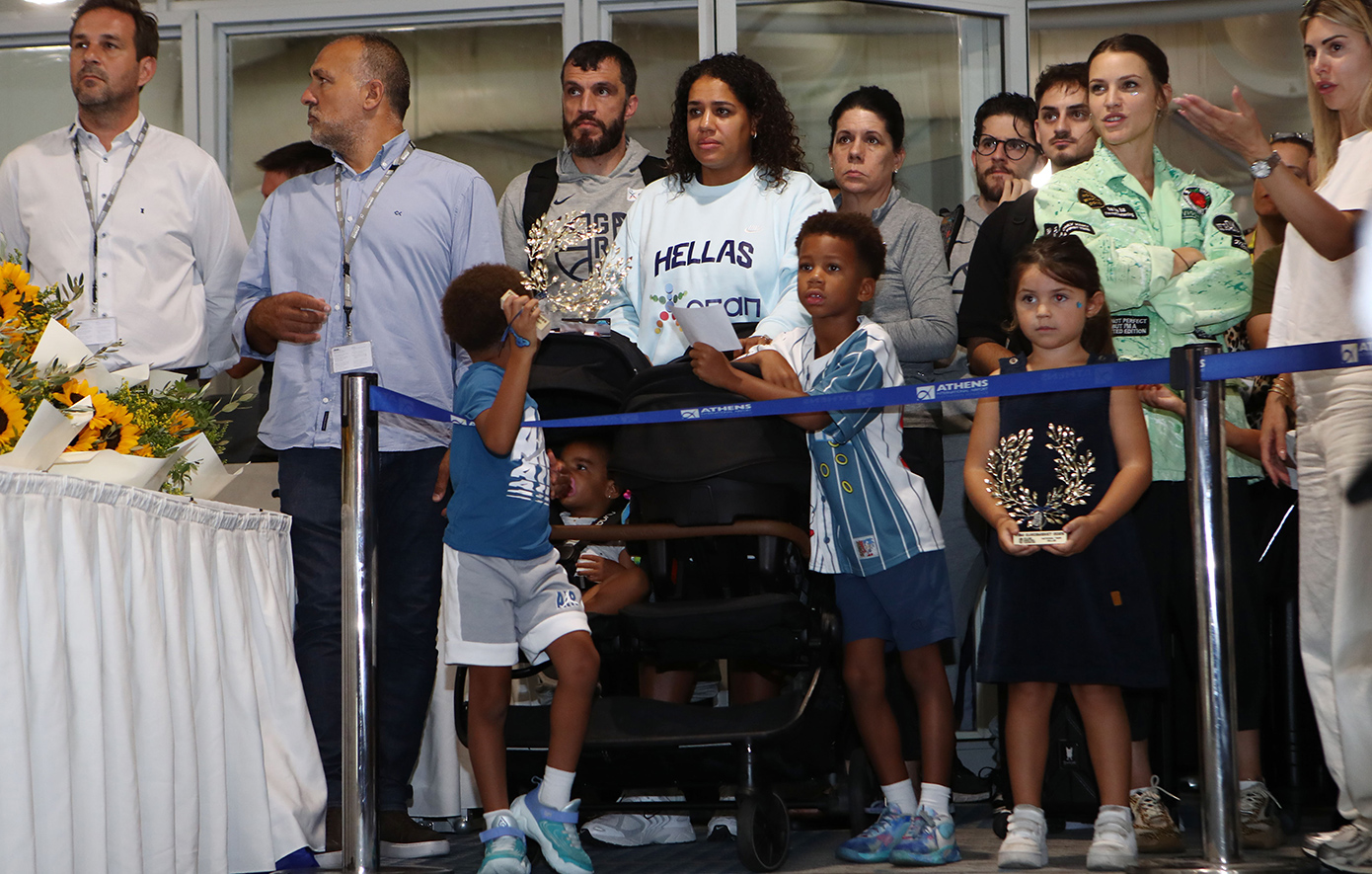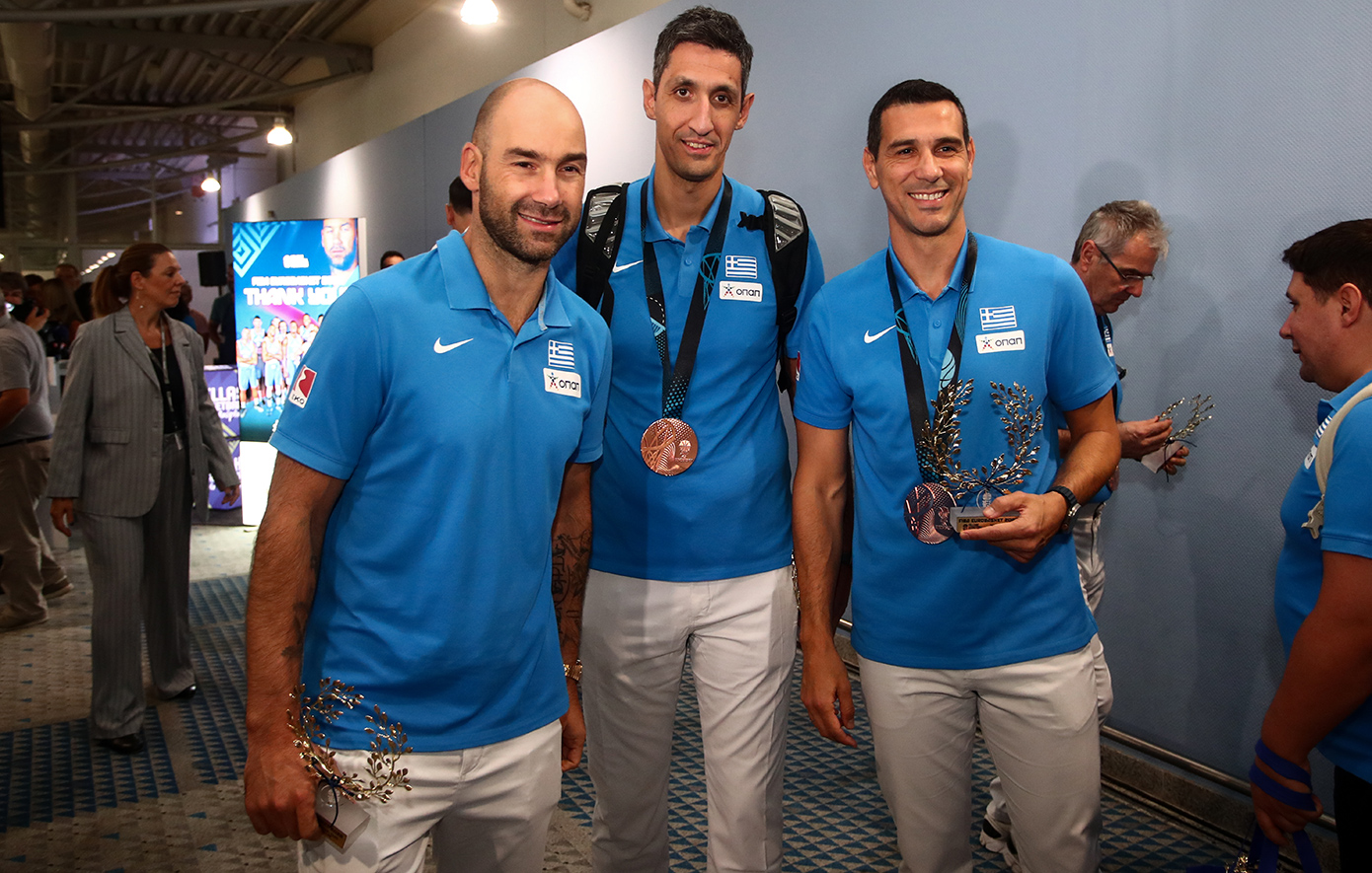 Η γαλανόλευκη αποστολή έφτασε στο αεροδρόμιο Ελευθέριος Βενιζέλος το μεσημέρι της Δευτέρας, με την υποδοχή να περιλαμβάνει λουλούδια και θερμά χειροκροτήματα από τον κόσμο. Παράλληλα, η Γενική Γραμματεία Αθλητισμού είχε προετοιμάσει ειδικά αναμνηστικά για να τιμήσει τους παίκτες και να τους ευχαριστήσει για την προσφορά τους στον ελληνικό αθλητισμό.