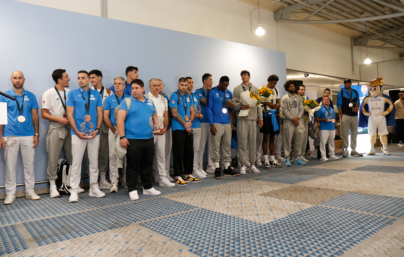 Μετά την εξαιρετική τους πορεία στο Eurobasket, οι παίκτες της Εθνικής μπάσκετ της Ελλάδας επέστρεψαν στη χώρα μας από τη Ρίγα της Λετονίας, φορώντας με υπερηφάνεια τα χάλκινα μετάλλια που κατέκτησαν, μετά τη νίκη επί της Φινλανδίας στον μικρό τελικό της διοργάνωσης. Η άφιξή τους στην Αθήνα συνοδεύτηκε από θερμή υποδοχή, καθώς όσοι βρέθηκαν στο αεροδρόμιο τους αποθέωσαν για την ιστορική τους επιτυχία.