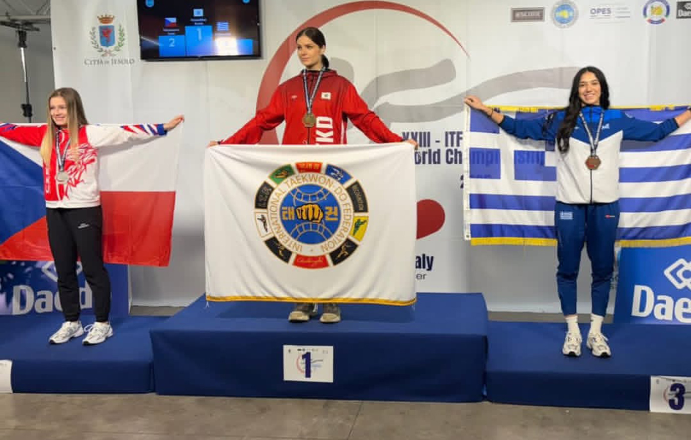 Από τις αστυνομικές περιπολίες στα παγκόσμια τατάμι! Η Κάλλια Στεφανουδάκη, η νεαρή Κρητικοπούλα που εκπαιδεύεται στη Σχολή Αστυφυλάκων Νάουσας και πραγματοποιεί την πρακτική της στον Πειραιά, απέδειξε για άλλη μια φορά ότι η πειθαρχία και η αφοσίωση την οδηγούν σε μεγάλες επιτυχίες. Το περασμένο Σαββατοκύριακο ταξίδεψε στην Ιταλία για το Παγκόσμιο Πρωτάθλημα TAEKWONDO ITF στο Jeloso και επέστρεψε με εντυπωσιακά αποτελέσματα.