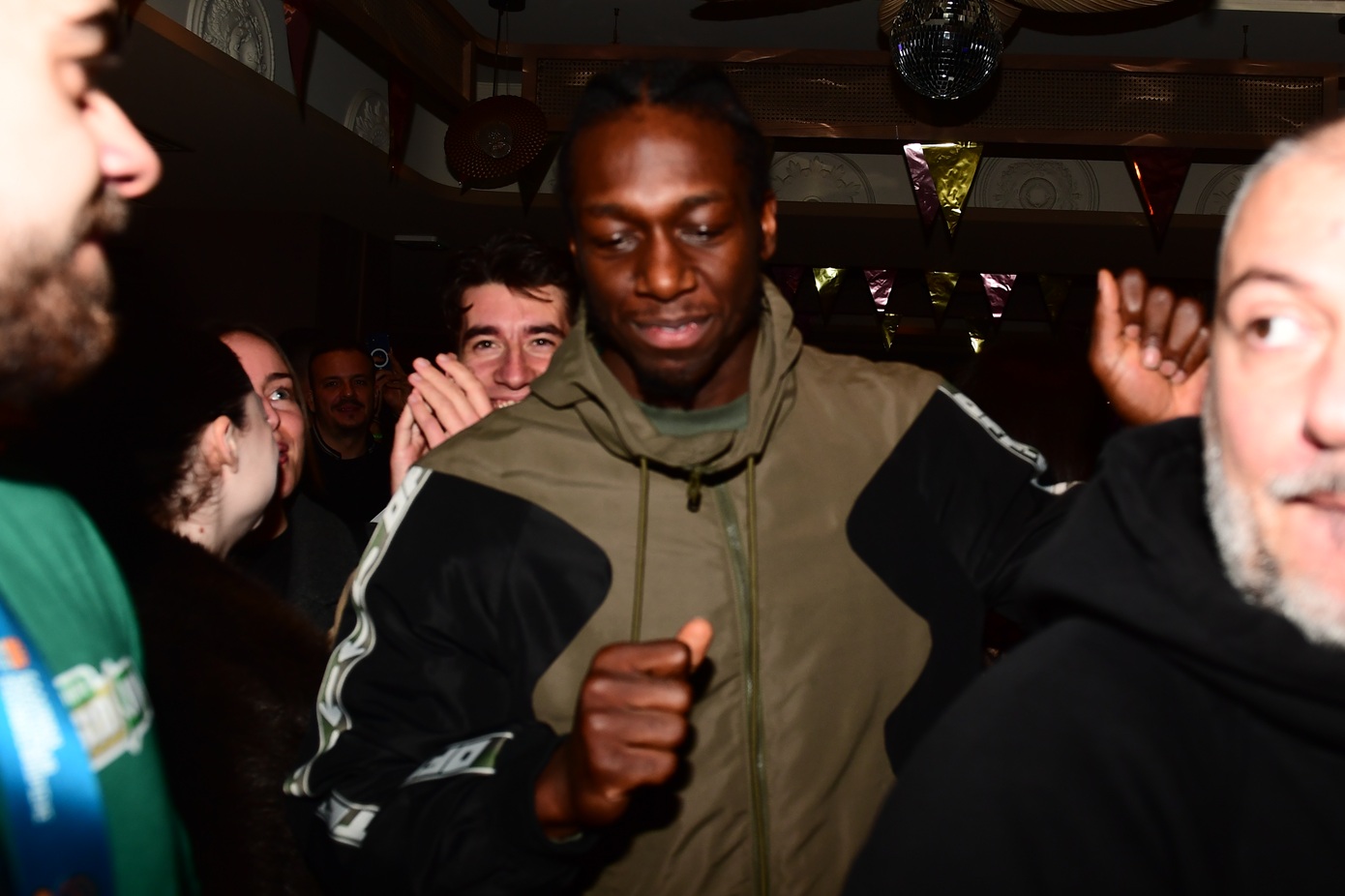 Ιδιαίτερη στιγμή της βραδιάς αποτέλεσε εκείνη κατά την οποία ο dj έπαιξε τον ύμνο της ομάδας, αλλά και το «Δεν θα πας πουθενά» της Πέγκυς Ζήνα, αφιερωμένο φυσικά στον Κέντρικ Ναν, προκαλώντας αποθέωση και μετατρέποντας το μαγαζί σε μια μικρή εξέδρα.