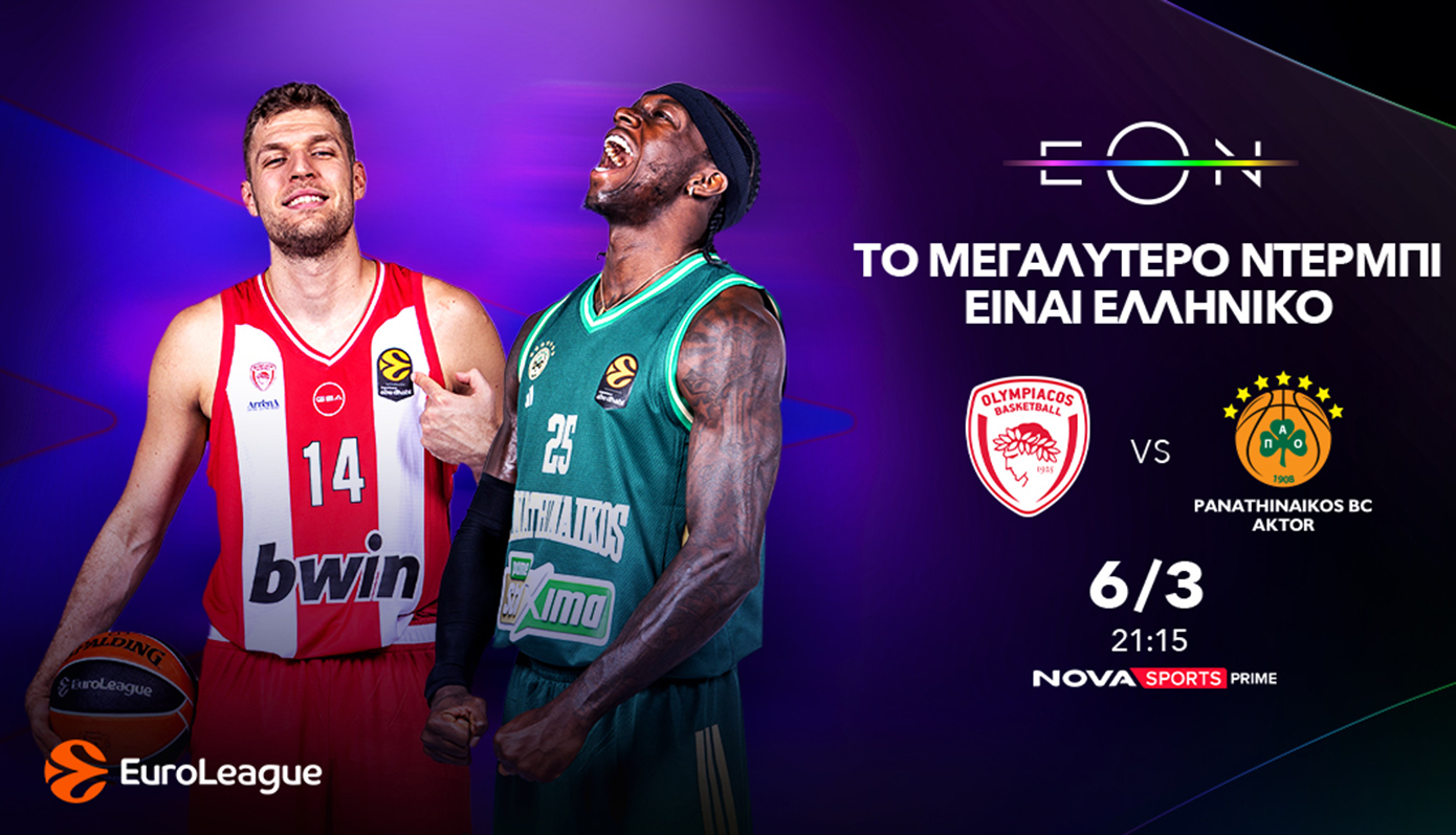 Το ντέρμπι «αιωνίων» της EuroLeague θα κριθεί αποκλειστικά στο παρκέ του Novasports! Οι φίλοι του μπάσκετ την Παρασκευή 6 Μαρτίου στις 21:15 θα έχουν την ευκαιρία να απολαύσουν αποκλειστικά στο Novasports Prime το μεγαλύτερο ντέρμπι της EuroLeague με ελληνικό χρώμα, Ολυμπιακός – Παναθηναϊκός AKTOR που θα διεξαχθεί στο ΣΕΦ για την 30η αγωνιστική της κορυφαίας ευρωπαϊκής διασυλλογικής διοργάνωσης στο χώρο του μπάσκετ.