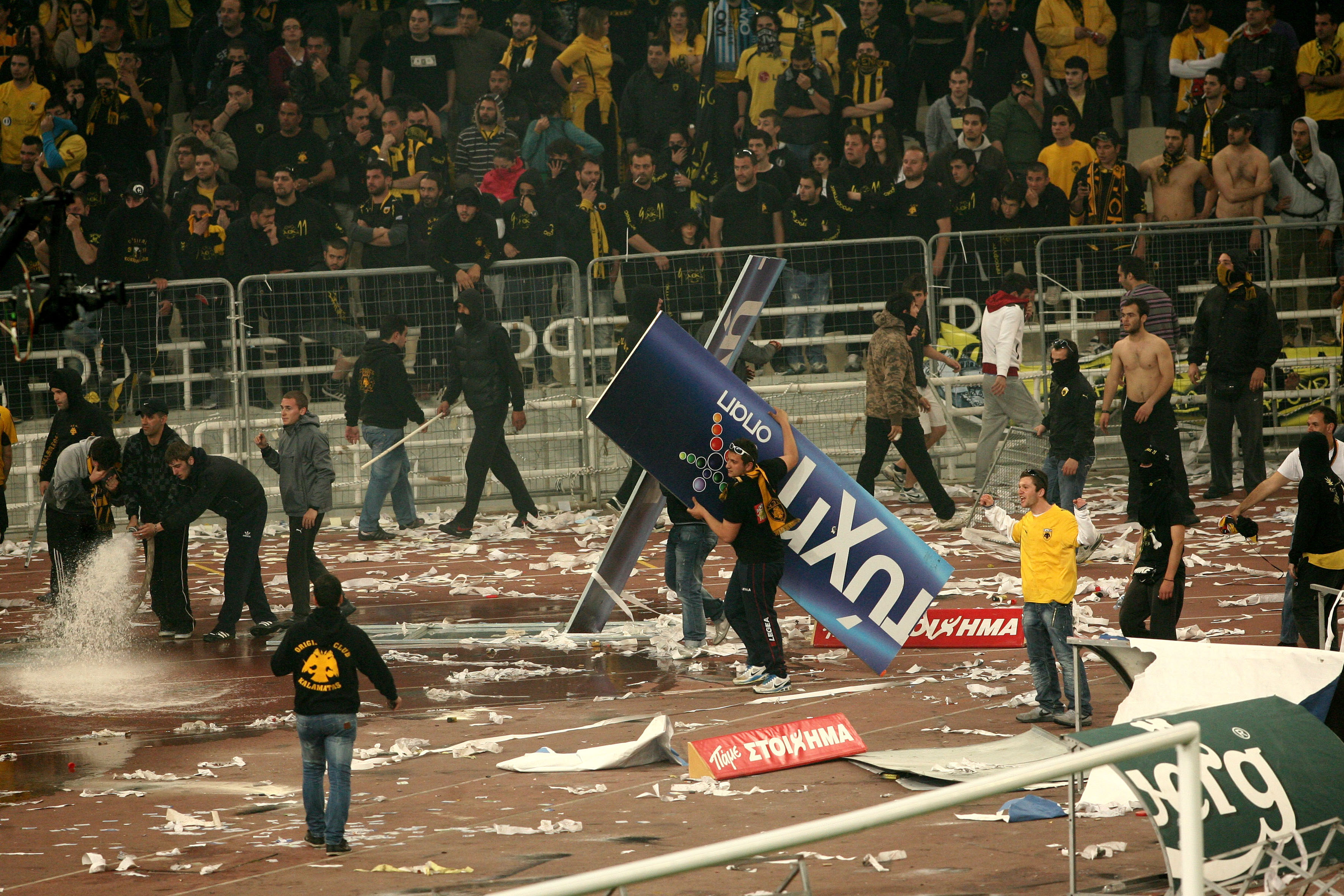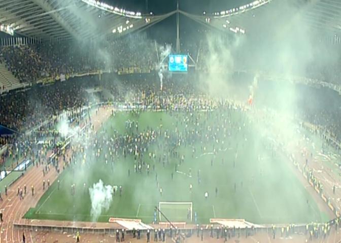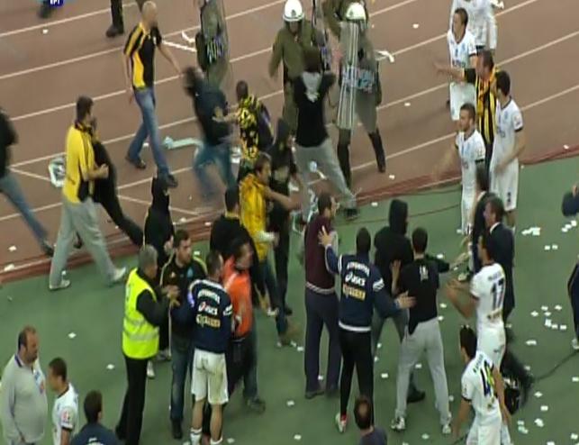 Στο τέλος της αναμέτρησης δεν έλειψαν τα επεισόδια, αφού οπαδοί της ΑΕΚ εισέβαλλαν νωρίτερα στον αγωνιστικό χώρο και επιτέθηκαν στους οπαδούς του Ατρόμητου. Σκηνές ντροπής και βιαιότητας εκτυλίχθηκαν και μεταξύ οπαδών και αστυνομικών.