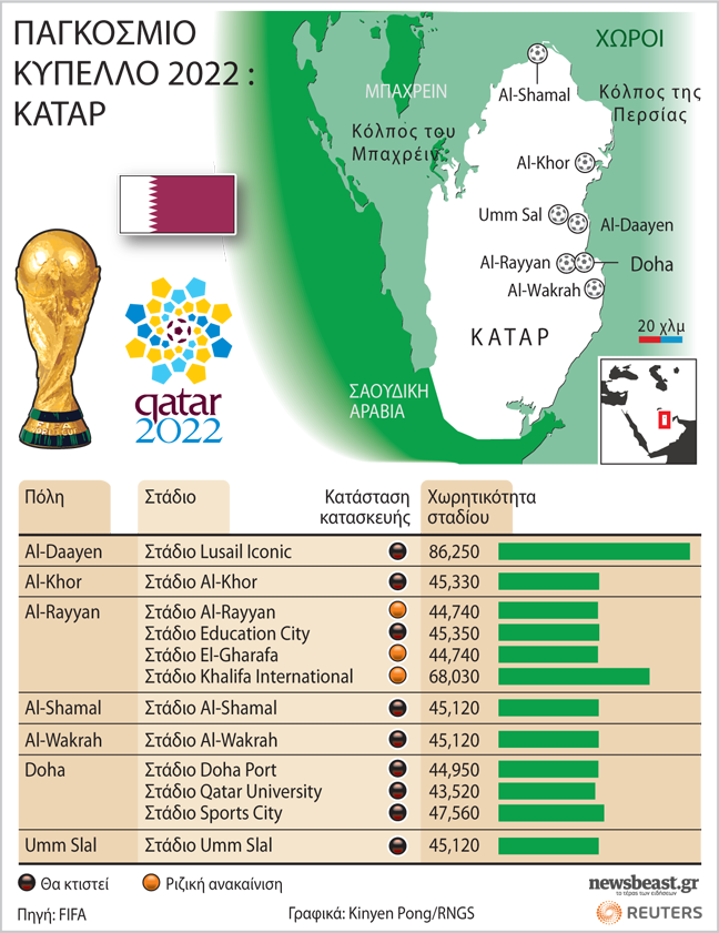 Εντυπωσιακά θα είναι τα στάδια που ετοιμάζει το Κατάρ για το Παγκόσμιο Κύπελλο του 2022 που θα διεξαχθεί στην αραβική χώρα.