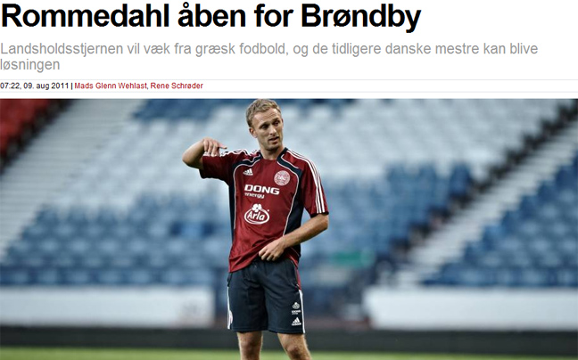Σε συζητήσεις με τη Μπρόντμπι για το ενδεχόμενο μεταγραφής του Ντένις Ρόμενταλ στην ομάδα βρίσκεται ο μάνατζέρ του, Σόρεν Λέρμπι, όπως αποκαλύπτει ο Τύπος της χώρας. Μάλιστα ο διεθνής εξτρέμ δηλώνει στην «Ekstra Bladet» κάτι παραπάνω από θετικός στο ενδεχόμενο επαναπατρισμού, από τη στιγμή που είναι εκτός πλάνων του Ερνέστο Βαλβέρδε στον Ολυμπιακό.