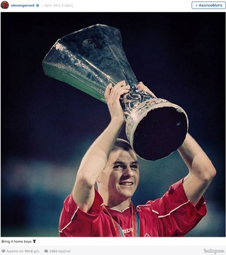 «Φέρτε το σπίτι παιδιά», έγραψε ο Στίβεν Τζέραρντ στο Instagram, απευθυνόμενος στους παίκτες της Λίβερπουλ, που θα διεκδικήσουν απόψε το τρόπαιο του Europa League. Μάλιστα, πόσταρε φωτογραφία του ίδιου από τον τελικό του 2000 που κατέκτησαν οι «reds».