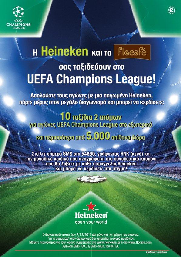 Τα Flocafé γίνονται το νέο ποδοσφαιρικό στέκι ενόψει των συναρπαστικών αναμετρήσεων του Champions League. Μπορείτε να απολαύσετε την κορυφαία διασυλλογική διοργάνωση σε οποιοδήποτε κατάστημα του δικτύου πίνοντας παράλληλα μια παγωμένη Heineken ενώ την ίδια στιγμή η τύχη σας «δουλεύει».