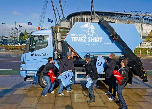 Στον περιβάλλοντα χώρο του «Ολντ Τράφορντ» έχει ήδη τοποθετηθεί φορτηγό ανακύκλωσης (!) στο οποίο οι φίλοι των δύο ομάδων θα μπορούν να πετούν τη φανέλα του Αργεντινού, πρώην επιθετικού της Γιουνάιτεντ και νυν (για πόσο ακόμα;) των «πολιτών» και θα έχουν τη δυνατότητα να αποκτήσουν μια νέα, με το όνομα του παίκτη της αρεσκείας τους!