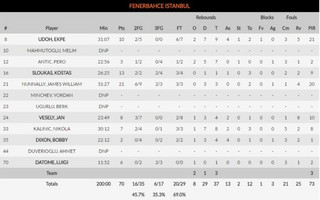 Την πρώτη μεγάλη νίκη του στην φετινή Ευρωλίγκα πανηγύρισε ο Παναθηναϊκός Superfoods. Με τον Καλάθη να οργιάζει σε ΟΛΟΥΣ τους τομείς, οι πράσινοι «σκότωσαν» την Φενέρμπαχτσε με σκορ 81-70 και υποχρέωσαν τον Ομπράντοβιτς στην τέταρτη ήττα σε ισάριθμες «επισκέψεις» του στο ΟΑΚΑ ως κόουτς των Τούρκων. «Μαγικός» ο Καλάθης που έπαιξε σαν πραγματικός αρχηγός υπό το βλέμμα του Δημήτρη Διαμαντίδη από τα επίσημα. Ο διεθνής γκαρντ κατέγραψε 16 πόντους (5/8 δίποντα, 1/3 τρίποντα, 3/4 βολές), μοίρασε 11 ασίστ, κατέβασε 8 ριμπάουντ, είχε 5 κλεψίματα(!) και μόλις ένα λάθος. Πραγματικά τρομερός… Στους 14 σταμάτησε ο αθόρυβος Νίκολς, από 10 είχαν Φελντέιν και Ρίβερς, 9 ο Σίνγκλεντον με πάμπολλη δουλειά σε όλους τους τομείς, άλλους τόσους ο Μπουρούσης με κρίσιμους πόντους στην τελευταία περίοδο, δεν αγωνίστηκε καθόλου ο Παππάς. Στο 7-5 βελτιώθηκε το ρεκόρ του Εξάστερου που ετοιμάζεται πλέον για την… διαβολοβδόμαδα, όπου θα αντιμετωπίσει αρχικά την Αρμάνι στο Μιλάνο (21/12) κι εν συνεχεία θα υποδεχθεί την Μπασκόνια (23/12). Στο 8-4 έπεσαν οι φιλοξενούμενοι που παραμένουν στην πρώτη τετράδα. Τα δεκάλεπτα: 23-14, 41-37, 61-52, 81-70