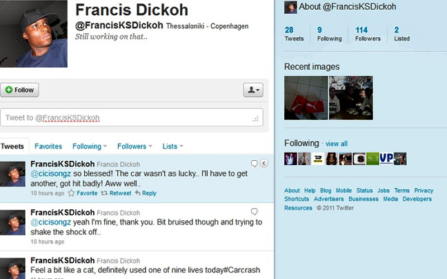Σοκαρισμένος από το τροχαίο ατύχημα που είχε την Πέμπτη δήλωσε ο Φράνσις Ντίκο, σύμφωνα με τα σχόλια που ανάρτησε στην προσωπική του σελίδα στο Twitter. Ο αμυντικός του Άρη υπολογίζεται ότι θα μείνει εκτός δράσης για περίπου δύο μήνες, αφού υπέστη κάταγμα στη μέση και απέφυγε τα χειρότερα.