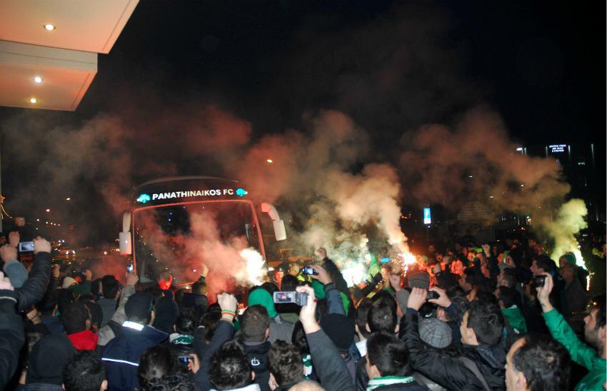 Αποθεωτική υποδοχή επεφύλαξαν οι οπαδοί του Παναθηναϊκού στην ομάδα τους, που έφτασε νωρίς το απόγευμα στον νομό Αιτωλοακαρνανίας.
