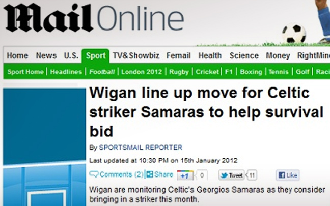 Στο «στόχαστρο» της Γουίγκαν φέρεται να βρίσκεται ο Γιώργος Σαμαράς, σύμφωνα με δημοσιεύματα του βρετανικού Τύπου.