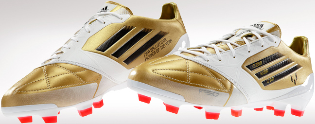 Η adidas για να τιμήσει τον αργεντινό ποδοσφαιριστή για το «χατ-τρικ» που πέτυχε με τη «Χρυσή Μπάλα» για τρεις συνεχόμενες χρονιές, σχεδίασε αποκλειστικά για αυτόν μια ειδική χρυσή έκδοση του παπουτσιού του, adizero f50.