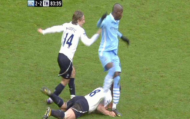 Η επίθεση προς τον Balotelli έγινε μια μέρα μετά το εσκεμμένο χτύπημα του επιθετικού στον Scott Parker της Totteham κατά τη διάρκεια της αναμέτρησης των δύο ομάδων. Ο Balotelli χτύπησε τον μέσο της Tottenham στο λαιμό. Λίγα λεπτά αργότερα, μάλιστα, ο επιθετικός της Manchester City πέτυχε το νικητήριο γκολ του ματς (3-2).