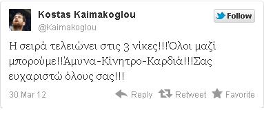 Ο Κώστας Καϊμακόγλου, από τους μεγάλους πρωταγωνιστές της νίκης στο Τελ Αβίβ, έστελνε το δικό του μήνυμα μέσω Twitter: