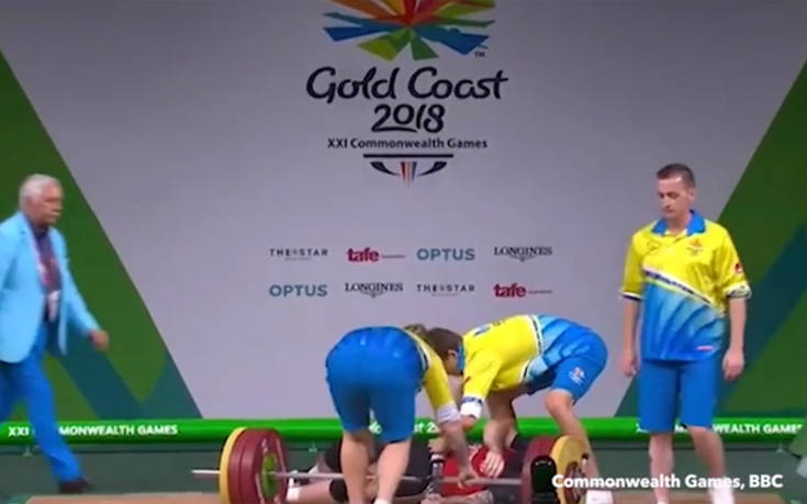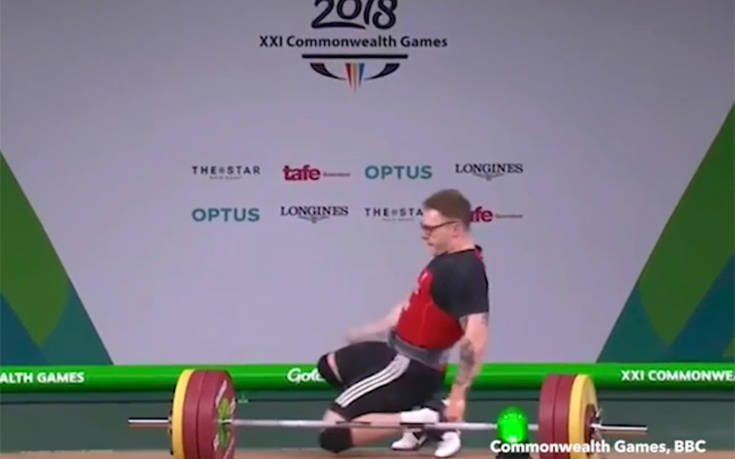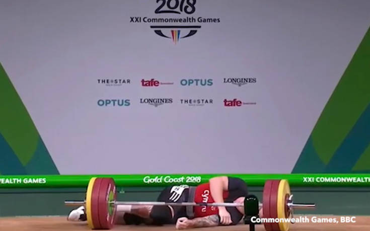 Σοκ προκάλεσε στους θεατές του αγωνίσματος της άρσης βαρών στην Αυστραλία η στιγμή της κατάρρευσης του Ουαλού αθλητή Τζόσουα Πέρι τη στιγμή που επιχειρούσε να σηκώσει 160 κιλά.
