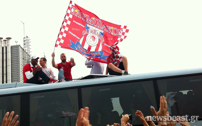 Το πούλμαν με τους πρωταθλητές κατευθύνεται προς το ΣΕΦ, όπου το ερυθρόλευκο πάρτι αναμένεται να συνεχιστεί.