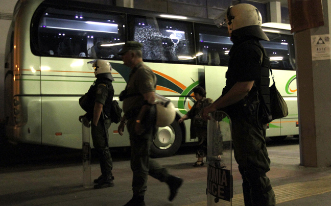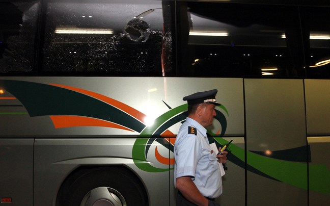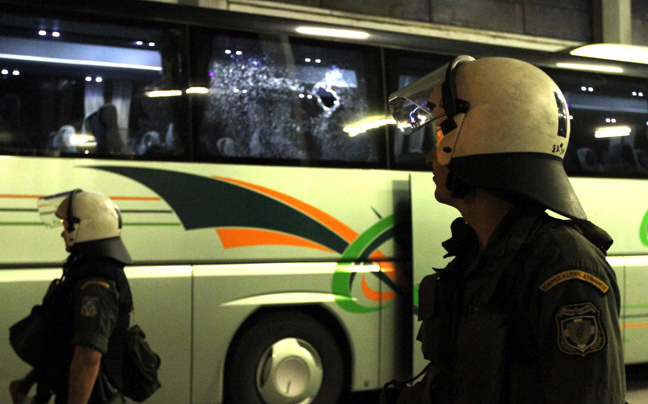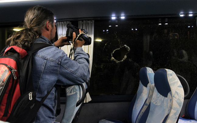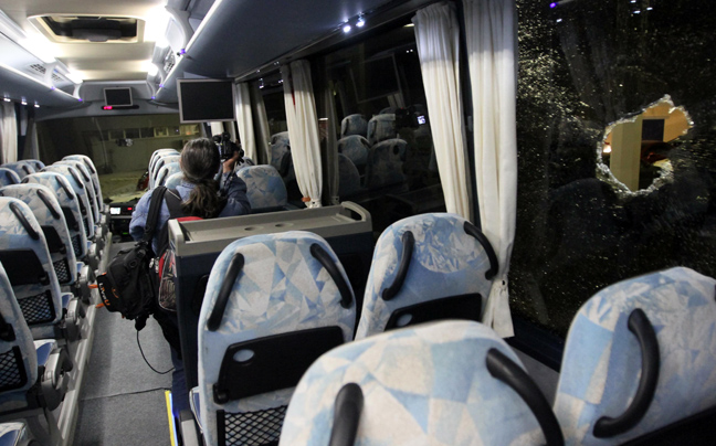 Σοκ προκαλούν οι εικόνες από το πούλμαν της αποστολής της ομάδας μπάσκετ του Παναθηναϊκού, μετά την επίθεση που δέχτηκε από άγνωστους, ενώ κατευθυνόταν προς το Στάδιο Ειρήνης και Φιλίας, για την πρώτη αναμέτρηση των τελικών Α1 μπάσκετ των ανδρών.