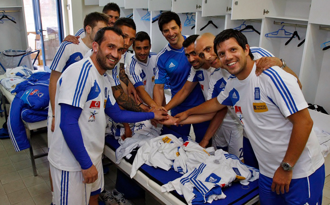 Ανταποκρίθηκε επίσης στην πρόσκληση των Διεθνών, Γιάννη Μανιάτη, Γιάννη Φετφατζίδη, Μιχάλη Σηφάκη, Κώστα Φορτούνη, Φάνη Γκέκα και Χοσέ Χολέμπας, και μπήκε στο γήπεδο για να προπονηθεί μαζί τους, ενώ δήλωσε πως αποτελεί όνειρο του, από τότε που ήταν και ο ίδιος αθλητής να μπορούσε και αυτός να συμμετάσχει στην αποστολή για μια τόσο μεγάλη αθλητική διοργάνωση, όπως το EURO!