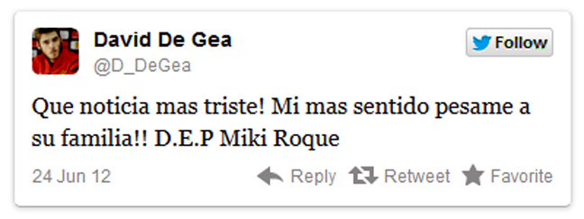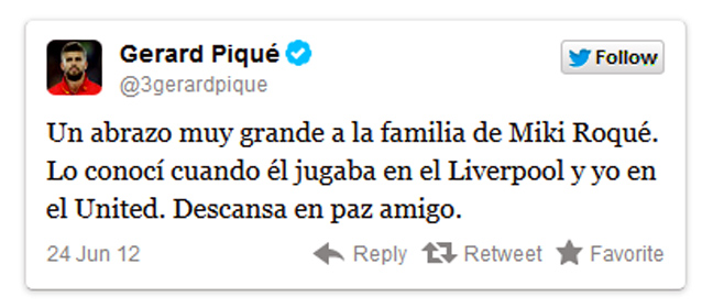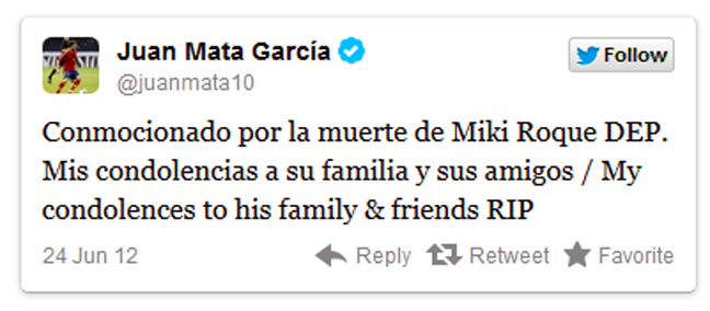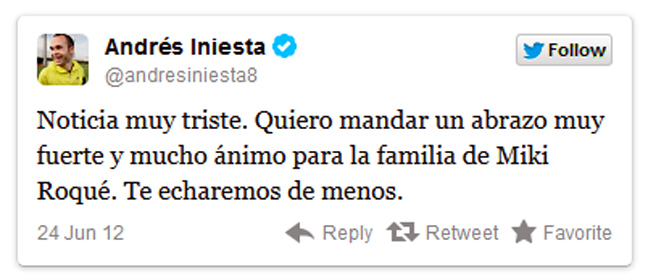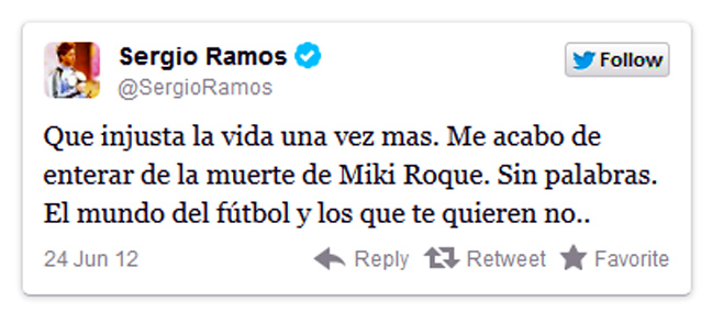 Άμεση ήταν η αντίδραση αρκετών ποδοσφαιριστών της εθνικής Ισπανίας, όπως ο Ράμος και Φάμπρεγκας, στην είδηση του θανάτου του Μίκι Ροκέ.