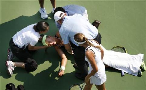 Αμέσως δέχθηκε τις πρώτες βοήθειες και αφού πέρασε λίγα λεπτά πεσμένη στο έδαφος αποχώρησε από το κορτ με αναπηρικό καροτσάκι, την ώρα που ο γιατρός του αγώνα προσπαθούσε να ελέγξει το σφυγμό της.