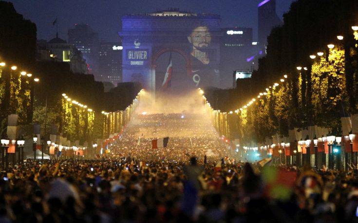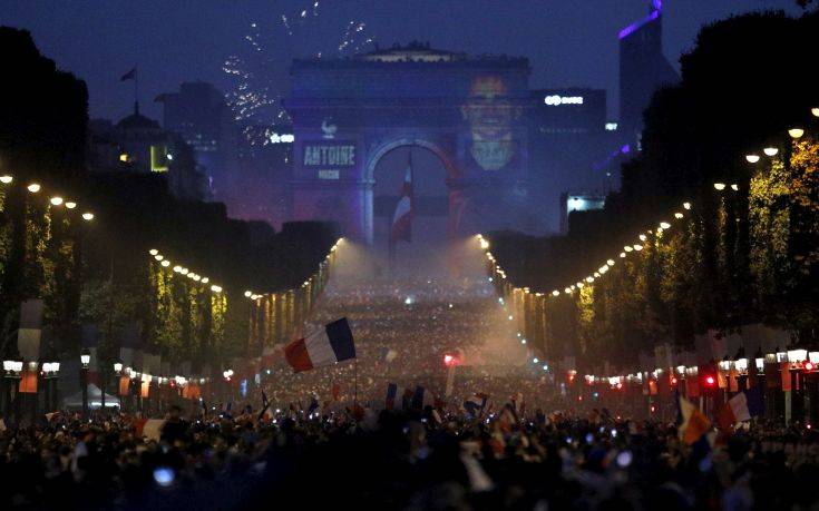 Στους δρόμους βγήκαν το βράδυ εκατοντάδες χιλιάδες Γάλλοι, πανηγυρίζοντας ξέφρενα τη νίκη της εθνικής τους ομάδας και την κατάκτηση του πολύτιμου τροπαίου του Παγκοσμίου Κυπέλλου 2018. Στο Παρίσι το επίκεντρο των πανηγυρισμών ήταν τα Ηλύσια Πεδία και ο πύργος του Άιφελ αλλά και σε πολλές άλλες πόλεις οι Γάλλοι επιδόθηκαν σε ένα ξέσπασμα χαράς μετά το σφύριγμα της λήξης του τελικού απέναντι στην Κροατία, την οποία η Γαλλία νίκησε με 4-2. «Νικήσαμε, νικήσαμε!» φώναζε το πλήθος στην περιοχή των φαν του Παρισιού. «Είναι θαυμάσιο, θαυμάσιο!» αναφωνεί συγκινημένη η 58χρονη Μαρτίν, που έχει έρθει μαζί με την κόρη της και 90.000 άλλους οπαδούς που «πνίγονται» μες τις σημαίες και τα καπνογόνα. Λίγα λεπτά αργότερα, τα Ηλύσια Πεδία ήταν κατάμεστα από κόσμο που κατέβηκε στους δρόμους για να γιορτάσει όλη νύχτα το δεύτερο παγκόσμιο κύπελλο της εθνικής ομάδας ποδοσφαίρου. Το 1998, περισσότεροι από ένα εκατομμύριο άνθρωποι είχαν συγκεντρωθεί για να γιορτάσουν τον «πρόεδρο» Ζιντάν και την ομάδα του στην «πιο όμορφη λεωφόρο του κόσμου». Περισσότεροι από 4.000 αστυνομικοί και χωροφύλακες είχαν κινητοποιηθεί στο Παρίσι ενώ η Γαλλία εξακολουθεί να ζει υπό την τρομοκρατική απειλή και στη σκιά του βάρβαρου πολύνεκρου χτυπήματος του 2015, με 246 νεκρούς. Στο Παρίσι, στο μπαρ Carillon, ένα από τα σημεία των επιθέσεων της 13ης Νοεμβρίου 2015, ο ο Μπενουά Μπαρντέ, ένας νεαρός σύμβουλος πληροφορικής «όχι ιδιαιτέρως φαν του ποδοσφαίρου», ήρθε για να γιορτάσει τον τίτλο με τους φίλους του και «να δείξω πως το Παρίσι δεν πεθαίνει ποτέ». «Το να είμαστε πρωταθλητές του κόσμου εδώ, είναι συμβολικό», έλεγε ενώ τα ποτήρια μπίρας πηγαινοέρχονταν συνεχώς. Κι εκείνος επίσης είχε αποφασίσει να κατευθυνθεί προς τα Ηλύσια Πεδία. Το 1998 «οι γονείς μου με είχαν βάλει για ύπνο στις 23:00 για να πάνε να γιορτάσουν στα Ηλύσια Πεδία. Αυτή τη φορά είναι η σειρά μου!» λέει. Πολλοί νέοι, όπως σημειώνει το Αθηναϊκό Πρακτορείο Ειδήσεων, θέλουν με τη σειρά τους να ζήσουν το μεθύσι του 1998. «Είναι το πιο όμορφο καλοκαίρι της ζωής μου», έλεγε η Μιριάμ, 17 ετών, στη βάση του Πύργου του Άιφελ. Στο Μποντί, στην περιοχή του Παρισιού, το τελευταίο γκολ, από τον «μικρό» της ομάδας Κιλιάν Μπαπέ, ακολούθησε μία έκρηξη χαράς. «Ο Κιλιάν σούταρε, ο Κιλιάν σκόραρε, ο Κιλιάν χρυσό μπαλόνι, το Μποντί πρωταθλητής, το Παγκόσμιο Κύπελλο στη Γαλλία!» φώναζαν οι νεαροί τραγουδώντας το “I will survive”, τον ύμνο της εθνικής ομάδας το 1998. Το ενδιαφέρον του κόσμου ανέβαινε όλο και περισσότερο στη διάρκεια του κυπέλλου στη Ρωσία. Στην αρχή σκεπτικό, το κοινό άρχισε σταδιακά να κερδίζει ο ποδοσφαιρικός πυρετός για να εκραγεί οριστικά μετά τη νίκη επί του Βελγίου την Τρίτη στον ημιτελικό. Είκοσι χρόνια μετά την εποποιία του 1998, οι 23 παίκτες της Εθνικής Γαλλίας που πήγαν στη Ρωσία (14 από τους οποίους κατάγονται από την αφρικανική ήπειρο) διεκδίκησαν με ασυνήθιστο τρόπο τη γαλλική ταυτότητά τους όπως ο Αντουάν Γκριεζμάν που είπε στον κόσμο να είναι «περήφανοι που είναι Γάλλοι». «Είναι τρελό να βλέπεις όλον τον κόσμο να κατεβαίνει έτσι στους δρόμους. Δεν υπάρχουν πλέον προβλήματα, ρατσισμός, όλος ο κόσμος είναι μαζί. Μόνο με το ποδόσφαιρο το βλέπεις αυτό» σχολίασε ο Λουντοβίκ Γκενιάντ, ηλεκτρονικός, με μια φανέλα του Γκριεζμάν στην πλάτη. Γιορτάζοντας τη νίκη σε ένα μπαρ στο κέντρο του Παρισιού, ο Τομά Μπαζί, 31 ετών, μιλά για «εμπιστοσύνη που ξαναβρήκαμε