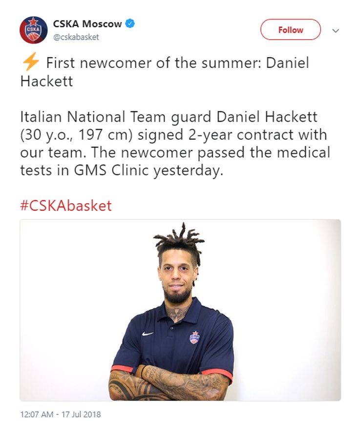 Το πρώτο μεταγραφικό της απόκτημα για την τρέχουσα περίοδο ανακοίνωσε η ΤΣΣΚΑ Μόσχας. Ο λόγος για τον Ντάνιελ Μάκετ, ο οποίος μετακομίζει στη Ρωσία, αφήνοντας πίσω του τη Γερμανία και την Μπάμπεργκ.