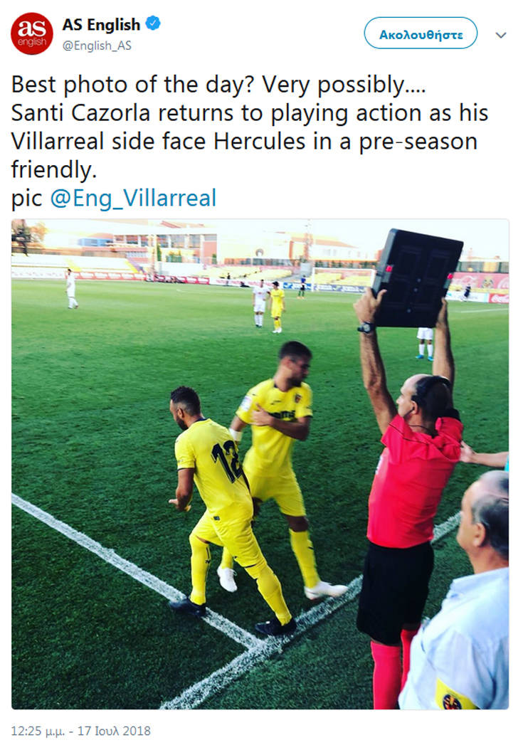 Setelah 630 hari absen. Welcome back, Santi Cazorla!pic.twitter.com/30nqdkYhuu