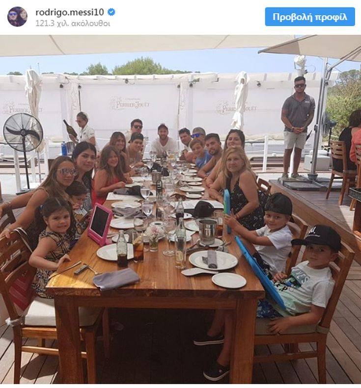 Αφού πέρασε καλά με την Αντονέλα, σειρά πήρε η ευρύτερη οικογένεια. Στη φωτογραφία που πόσταρε στο Instagram ο αδερφός του Ροδρίγο, ο Λιονέλ Μέσι κάθεται στην κεφαλή του τραπεζιού και έχει συγκεντρωμένο όλο το σόι. Άλλωστε λογικά εκείνος θα πληρώνει…