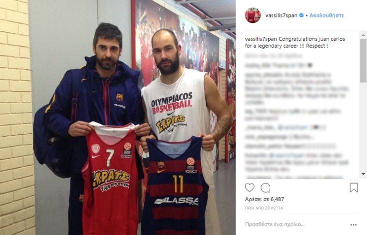 Έχουν έρθει αντιμέτωποι πολλές φορές στα παρκέ και είναι θρύλοι του μπάσκετ και της Euroleague. Ο Βασίλης Σπανούλης θέλησε να… υποκλιθεί στον Χουάν Κάρλος Ναβάρο που αποσύρθηκε από την ενεργό δράση, ανεβάζοντας μια φωτογραφία στην οποία αντάλλαξαν τις φανέλες τους. «Συγχαρητήρια Χουάν Κάρλος για μια θρυλική καριέρα. Σεβασμός», έγραψε ο ηγέτης του Ολυμπιακού για τον Ισπανό.