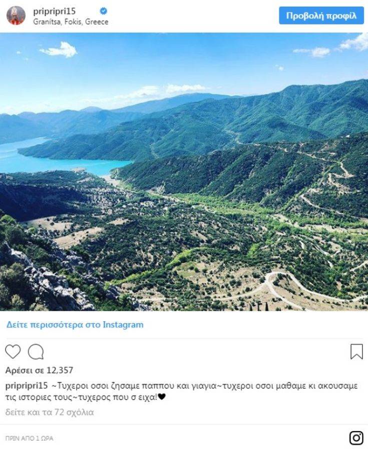 «Τυχεροί όσοι ζήσαμε παππού και γιαγιά, τυχεροί όσοι μάθαμε κι ακούσαμε τις ιστορίες τους, τυχερός που σ’ είχα!», έγραψε χαρακτηριστικά ο υπαρχηγός του Ολυμπιακού, κάτω από μία φωτογραφία της Γρανίτσας όπου και έζησε ο παππούς του.