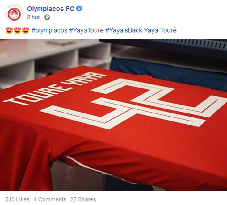 Τους οπαδούς του Ολυμπιακού να την κάνουν δική τους περιμένει η φανέλα του Γιάγια Τουρέ, ο οποίος επέστρεψε στην Ελλάδα και το Λιμάνι μετά από 12 χρόνια.