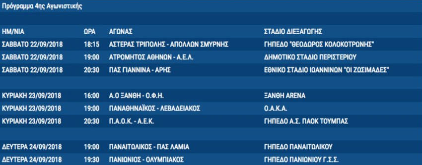 Μαζεμένα θα έχουν τη δυνατότητα να δουν οι οπαδοί των μεγάλων ομάδων τα ντέρμπι της φετινής Super League καθώς η διοργανώτρια αρχή έβγαλε το πρόγραμμα για την 4η, 5η και 6η αγωνιστική.