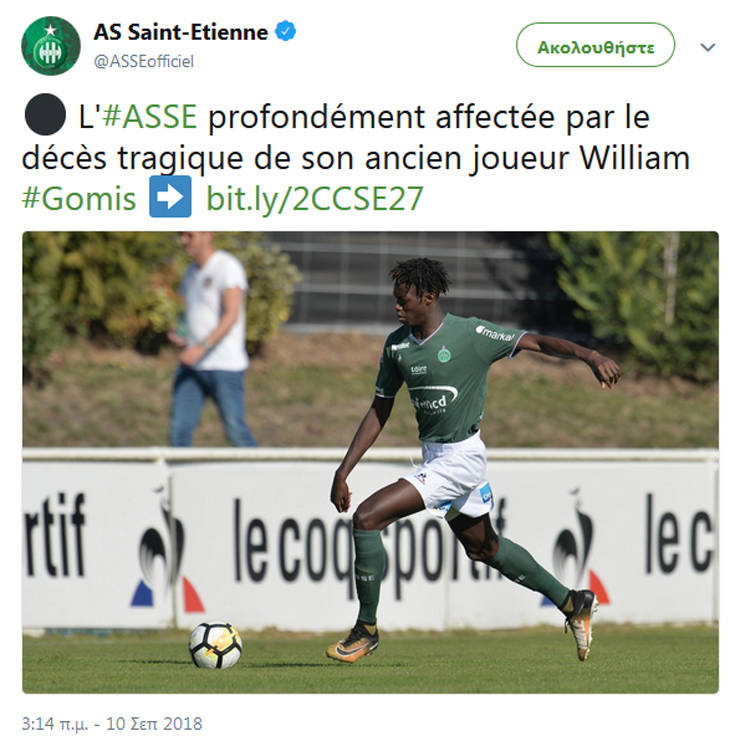 Τον θάνατο του Γουιλιάμ Γκομίς σε ηλικία 19 ετών γνωστοποίησε σήμερα η Σεντ Ετιέν, καθώς ο ποδοσφαιριστής ανήκε μέχρι αυτό το καλοκαίρι και για πέντε χρόνια στο δυναμικό της. Ο νεαρός έπεσε νεκρός από σφαίρες σε παραλιακή πόλη της Ακτής Ελεφαντοστού χθες το βράδυ. Επίσης, σύμφωνα με τη Le Progres, στο περιστατικό φέρεται να έχει σκοτωθεί και ένα 14χρονο αγόρι. Ο Γκομίς αποχώρησε από τους «πράσινους» αυτό το καλοκαίρι, έχοντας την προηγούμενη σεζόν στη Β’ ομάδα του συλλόγου 18 συμμετοχές.