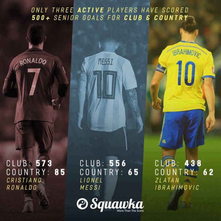 Κριστιάνο Ρονάλντο, Λιονέλ Μέσι, Ζλάταν Ιμπραΐμοβιτς. Στον αστερισμό τους ζει όλο το ποδόσφαιρο. Ο Σουηδός έφτασε στην 500άρα με το τρομερό «χορευτικό» τα ξημερώματα της Κυριακής κι έτσι, μαζί με τον Αργεντινό και τον Πορτογάλο, έχουν… χορτάσει τον κόσμο θέαμα και γκολ. Οι τρεις παγκόσμιοι αστέρες έχουν φτάσει συνολικά στα 1.779 γκολ, με τους Μέσι και Κριστιάνο που μέχρι πρότινος είχαν μετατρέψει ολόκληρο το ισπανικό ποδόσφαιρο σε προσωπική τους κόντρα, να έχουν ξεπεράσει έκαστος τα 600 τέρματα (621 ο Αργεντίνος, 658 ο Πορτογάλος). Πιο συγκεκριμένα, ο CR7 έχει 573 σε συλλογικό επίπεδο με της Σπόρτινγκ Λισαβόνας, Μάντσεστερ Γιουνάιτεντ και Ρεάλ Μαδρίτης (με τη Γιουβέντους δεν έχει σκοράρει ακόμα) ενώ με την εθνική ομάδα της πατρίδας του βρίσκεται στα 85. Ο ηγέτης της Μπαρτσελόνα έχει 556 τέρματα με τους «μπλαουγκράνα» στους οποίους βρίσκεται από πιτσιρίκι, όταν άφησε την Αργεντινή για να βρει γιατρειά στο ορμονικό πρόβλημα του ύψους και να κυνηγήσει το ποδοσφαιρικό του όνειρο, ενώ με την «αλμπισελέστε» έχει 65 τέρματα και… ίσως να σταματήσει εκεί αν τελικά αποφασίσει να μη συνεχίσει να προσφέρει στο αντιπροσωπευτικό συγκρότημα. Ο Ζλάταν Ιμπραΐμοβιτς σκοράροντας ξανά με τους Γκάλαξι, έφτασε στην 500άρα, με τα 438 εξ αυτών σε επίπεδο συλλόγων (Μάλμε, Μπαρτσελόνα, Γιουβέντους, Μάντσεστερ Γιουνάιτεντ, Άγιαξ, Μίλαν, Ίντερ και Λ.Α.) έχοντας και 62 γκολ με την εθνική ομάδα της Σουηδίας.