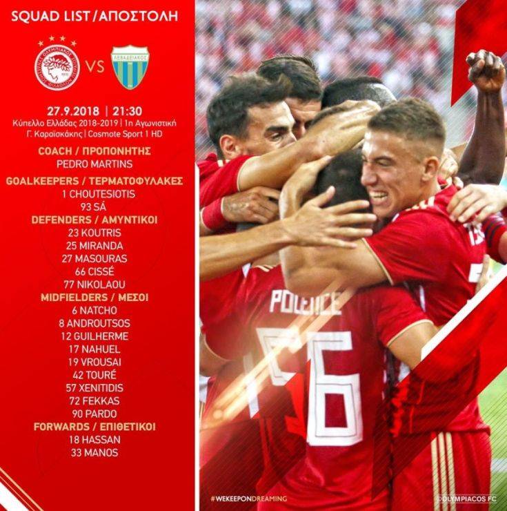 Η ώρα του Γιαγά Τουρέ αλλά και του Ναουέλ έφτασε! Ο Μαρτίνς ετοιμάζει έναν… άλλον Ολυμπιακό – όπως αναμενόταν – για το ματς Κυπέλλου με τον Λεβαδειακό. Η πρώτη εμφάνιση του Γιαγιά Τουρέ σε αποστολή, μετά την επιστροφή του στο Λιμάνι, είναι γεγονός. Ο Ιβοριανός είναι έτοιμος και όπως αναμενόταν, υπολογίζεται από τον Πέδρο Μαρτίνς. Ο Ναουέλ επίσης κάνει κι αυτός το ντεμπούτο του στην ερυθρόλευκη αποστολή, ενώ επιστρέφουν σ’ αυτήν Νικολάου και Ανδρούτσος αλλά και Πάρντο. Η αποστολή: