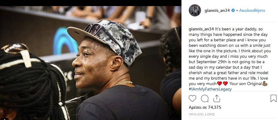 Ένας χρόνος συμπληρώνεται σήμερα από τον θάνατο του Τσαρλς Αντετοκούνμπο και ο γιος του, Γιάννης έκανε μια συγκινητική ανάρτηση στο Instagram.