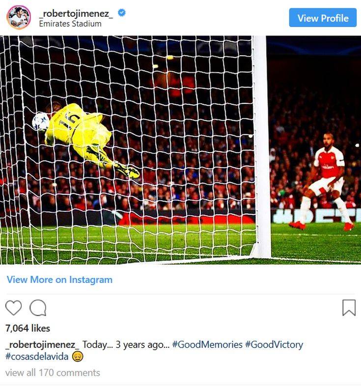 Σαν σήμερα ο Ολυμπιακός σημείωσε την τεράστια νίκη με 3-2 μέσα στο Emirates επί της Άρσεναλ και ο Ρομπέρτο με ανάρτησή του θυμήθηκε το μεγάλο αυτό αποτέλεσμα των «ερυθρόλευκων». Πριν από ακριβώς τρία χρόνια ο Ολυμπιακός είχε πανηγυρίσει τεράστια νίκη επί της Άρσεναλ με 3-2 μέσα στο Λονδίνο. Τερματοφύλακας του Ολυμπιακού εκείνο το βράδυ ήταν ο Ρομπέρτο, ο οποίος δεν ξέχασε εκείνο το αποτέλεσμα. Με ανάρτησή του στο Instagram ο Ισπανός πόσταρε μια φωτογραφία με μία απόκρουσή του από εκείνη την αναμέτρηση, γράφοντας: «Σαν σήμερα, τρία χρόνια πριν. Ωραίες αναμνήσεις, μεγάλη νίκη».