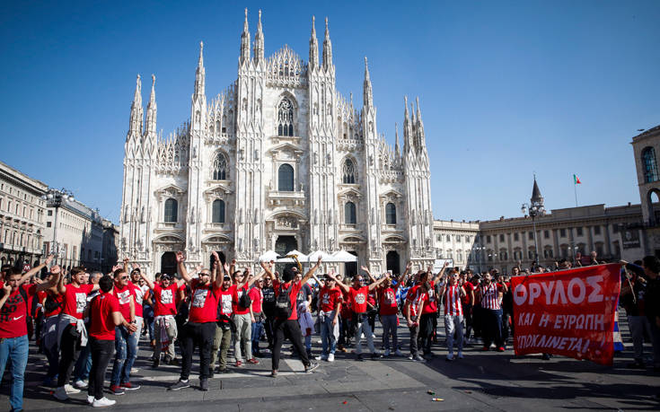 Δυναμική η παρουσία του κόσμου του Ολυμπιακού που κατέκλυσε την πλατεία Ντουόμο του Μιλάνου και φώναξε τραγούδια και συνθήματα για την ομάδα πριν το ματς με τη Μίλαν. Η Πιάτσα Ντελ Ντουόμο είναι η κεντρική πλατεία την πόλης του Μιλάνου, έχοντας πάρει το όνομά της από τον επιβλητικό καθεδρικό ναό της πόλης. Ο Ολυμπιακός βρίσκεται ήδη στην Ιταλία για το μεγάλο ματς με την Μίλαν και ο κόσμος του δεν γινόταν να χάσει αυτό το μεγάλο… ραντεβού.