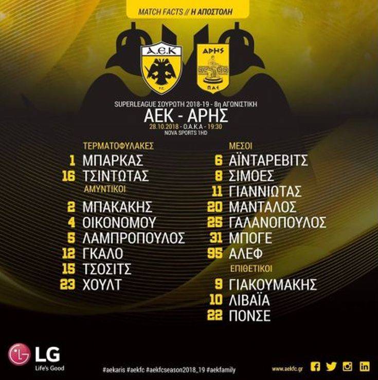 Χωρίς Μπακασέτα, Κλωναρίδη και Τσιγκρίνσκι η ΑΕΚ με Άρη
